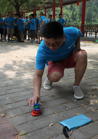 由于當(dāng)日氣溫比較炎熱,室外拓展進(jìn)行了團(tuán)隊(duì)塔、愛的傳遞等運(yùn)動(dòng)量低但需要團(tuán)隊(duì)合作才能過關(guān)的項(xiàng)目。為了能完成教官布置的挑戰(zhàn),各小隊(duì)都能緊密協(xié)作,合理分工,整個(gè)挑戰(zhàn)過程中除了環(huán)環(huán)相扣的團(tuán)隊(duì)合作,也不乏個(gè)人智慧的閃現(xiàn)。