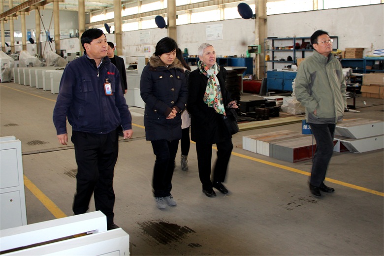 在參觀鋁機總裝車間時,Bernice Herris副校長對我公司目前處于國內(nèi)領先水平的鋁機產(chǎn)品表示了充分肯定,并對其研發(fā)、工藝流程進行了詳細詢問,公司生產(chǎn)副總亓愛林對考察團提出的問題一一作了解答。