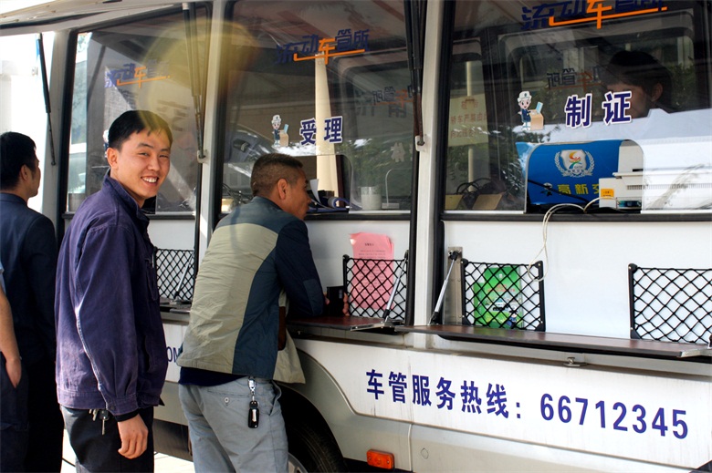 濟南天辰鋁機股份有限公司是我國著名的鋁材加工設(shè)備研究基地和制造中心,現(xiàn)有員工400余人,各類車輛200余輛,由于企業(yè)生產(chǎn)任務(wù)緊、工作繁忙,受工作時間限制,公司員工辦理業(yè)務(wù)很不方便。經(jīng)我司車隊負責(zé)人劉社軍與高新交警大隊聯(lián)系溝通,交警大隊領(lǐng)導(dǎo)了解到企業(yè)這一難題,考慮到濟南天辰鋁機股份有限公司是全省先進企業(yè)、濟南市重點企業(yè),且公司所屬車輛較多,本著方便企業(yè)的原則,要求“流動車管所”服務(wù)車開進濟南天辰鋁機股份有限公司,零距離為企業(yè)職工上門服務(wù)。
