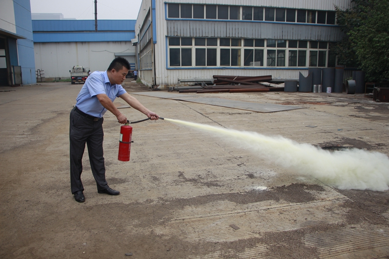 09月24日上午九點,所有參與演練人員在預定地點集合,總指揮亓總再次重申重視消防安全的重要性與必要性,由王元軍主任為員工進行了消防安全知識培訓,并講解手提式滅火器的正確使用方法。